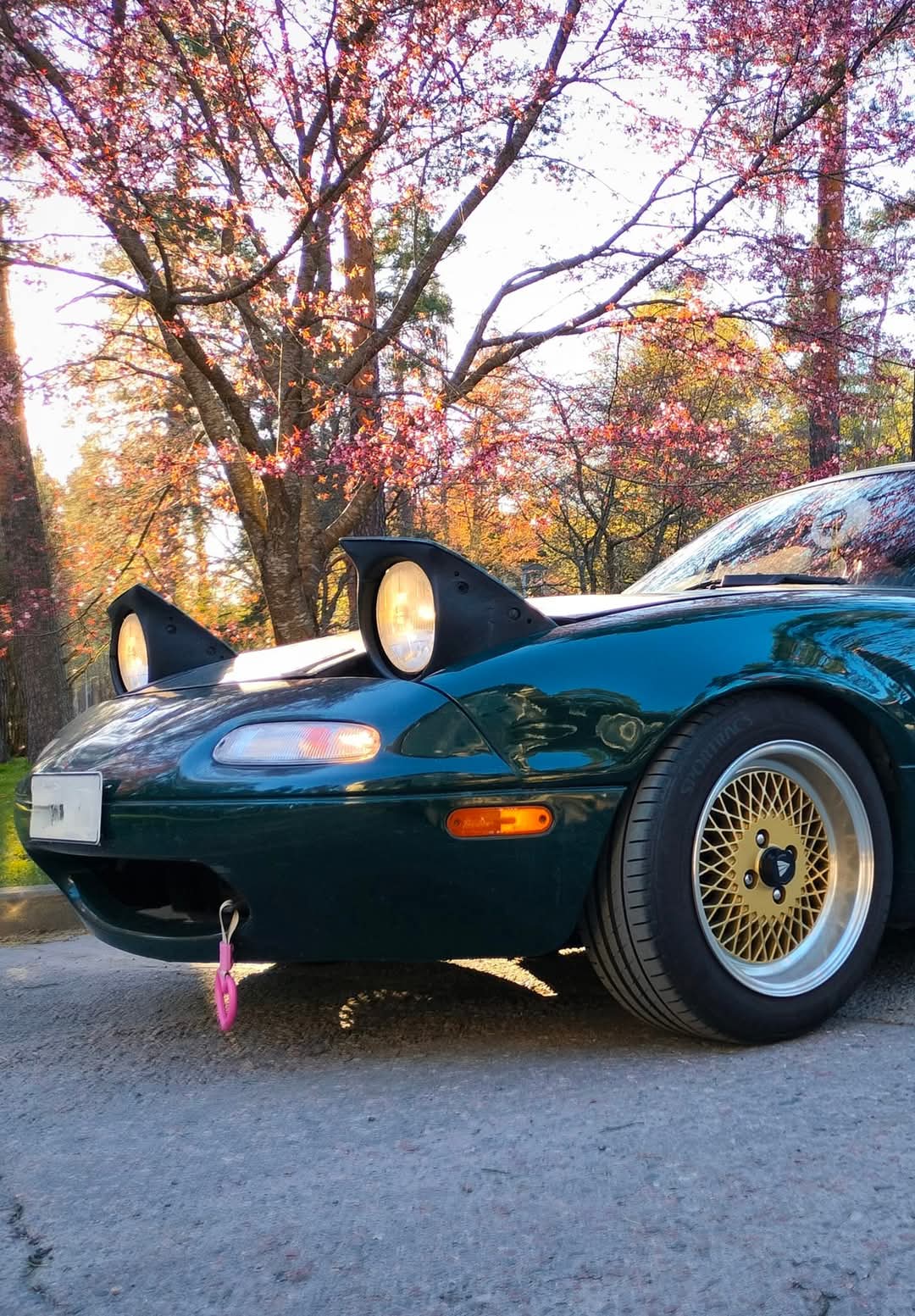 This '97 Miata keeps the original lightweight charm but with a tightened, planted personality thanks to BC Racing BR Series coilovers (8/6 kg/mm). The lowered stance is subtle — enough to sharpen turn-in and reduce body roll without killing daily comfort. Wheels tuck neatly, steering feels more immediate, and the whole car communicates better at pace. It’s the kind of setup that makes backroad runs addictive: you’re not chasing power, you’re sharpening skill. Clean, simple, effective — a driver’s car that prefers a canyon over a strip 🛸